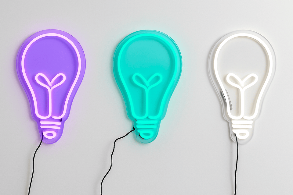 Bring the ideas to life.This glass neon Light Bulb turns the universal symbol of creativity into a glowing modern sculpture — a smooth bulb outline with a looping filament, all mounted on a clean acrylic backing that lets the colour take centre stage. Available in Ice Blue, Purple, and White, each version casts a crisp, atmospheric glow that transforms any space into an instant mood board.